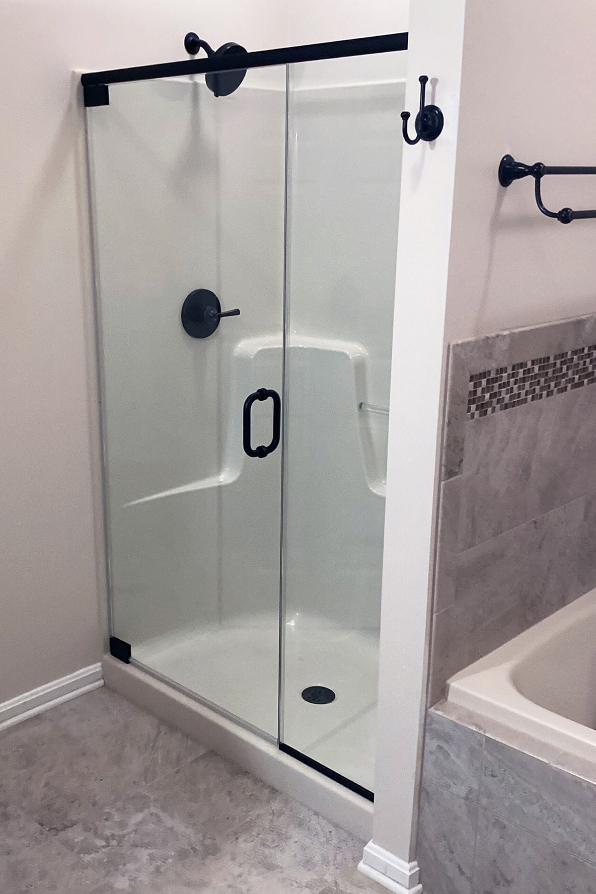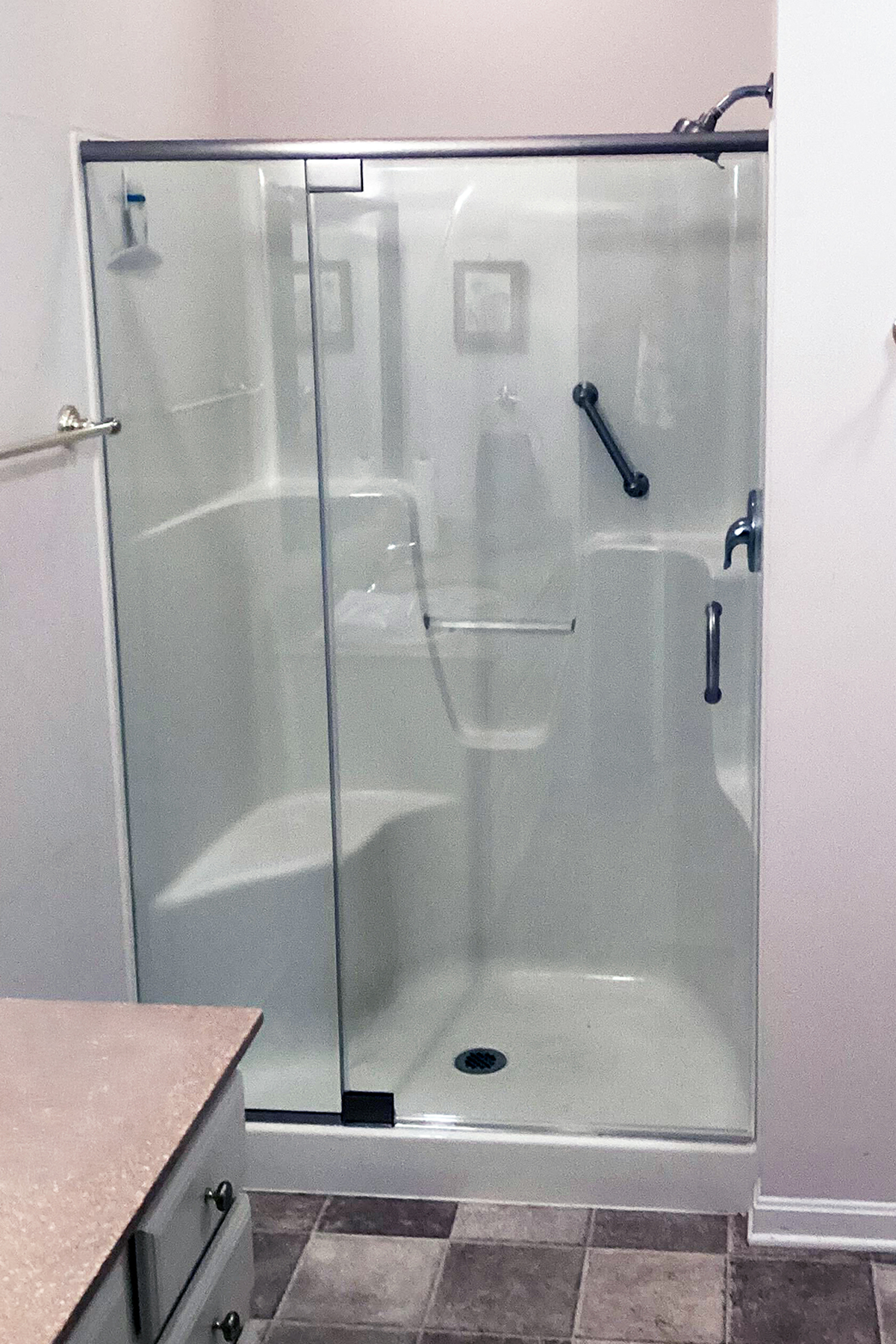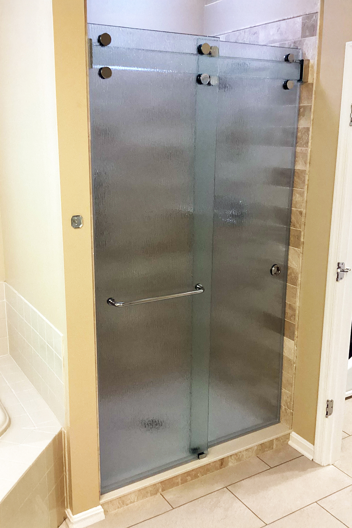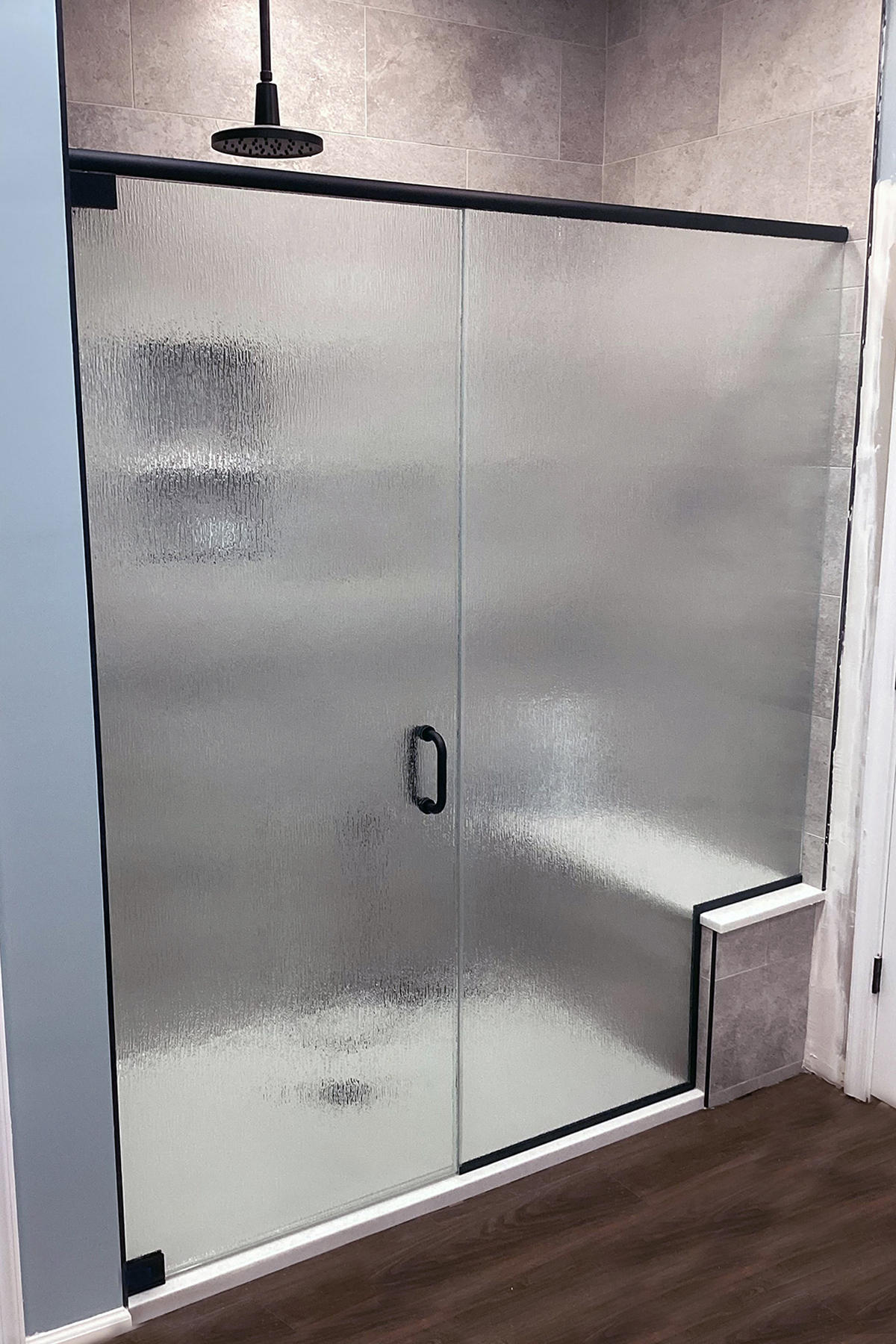 Panel-Door-Panel units where the door hinges off of one of the two inline stationary panels