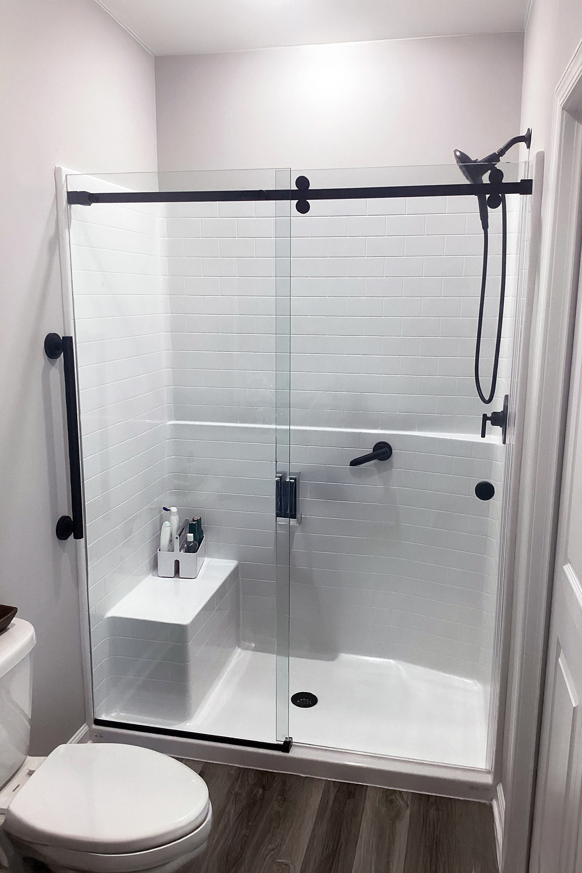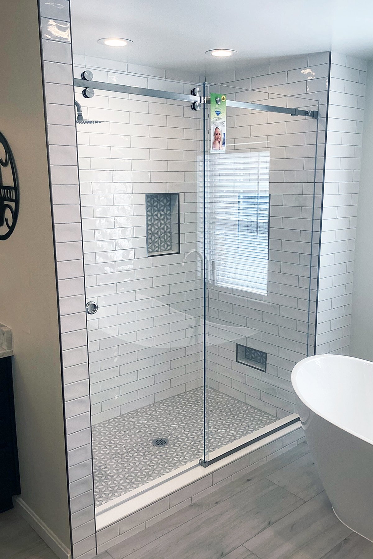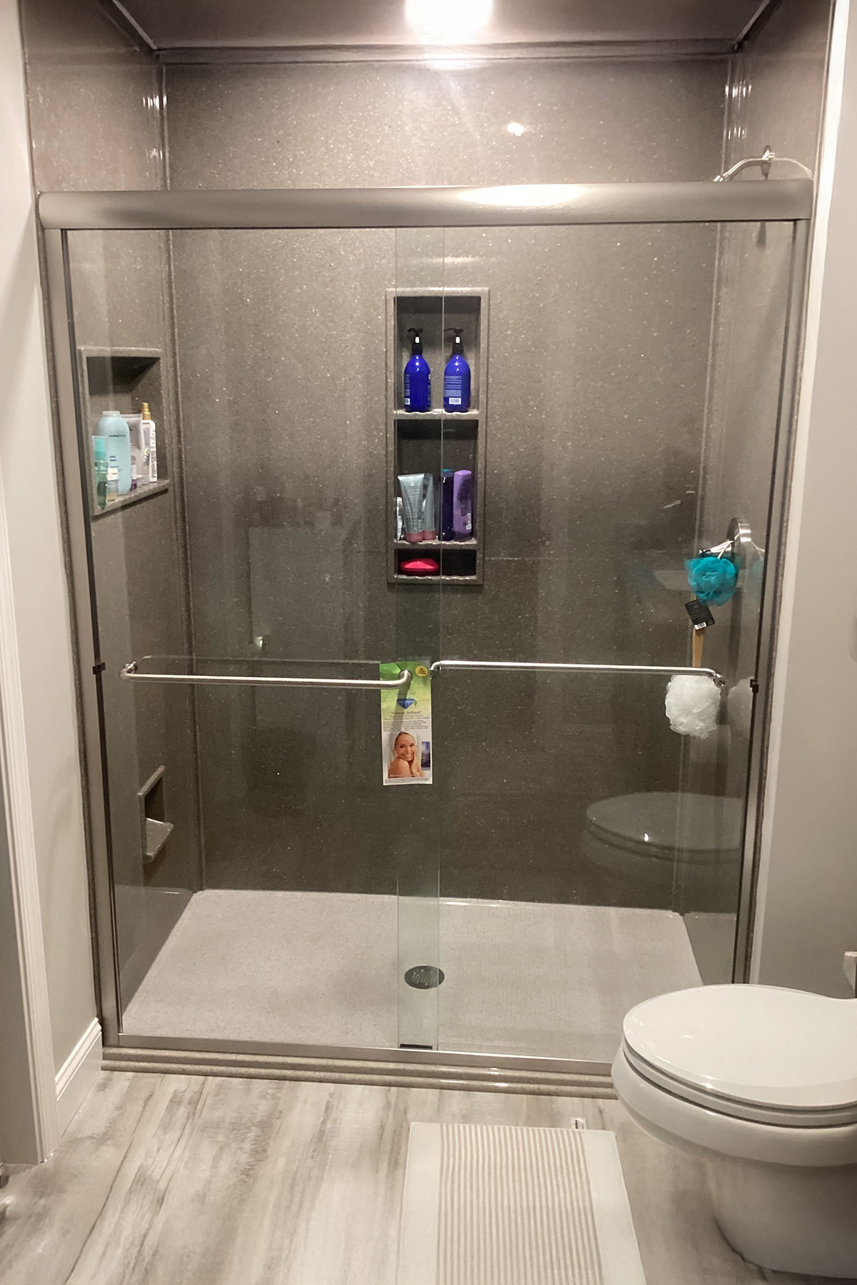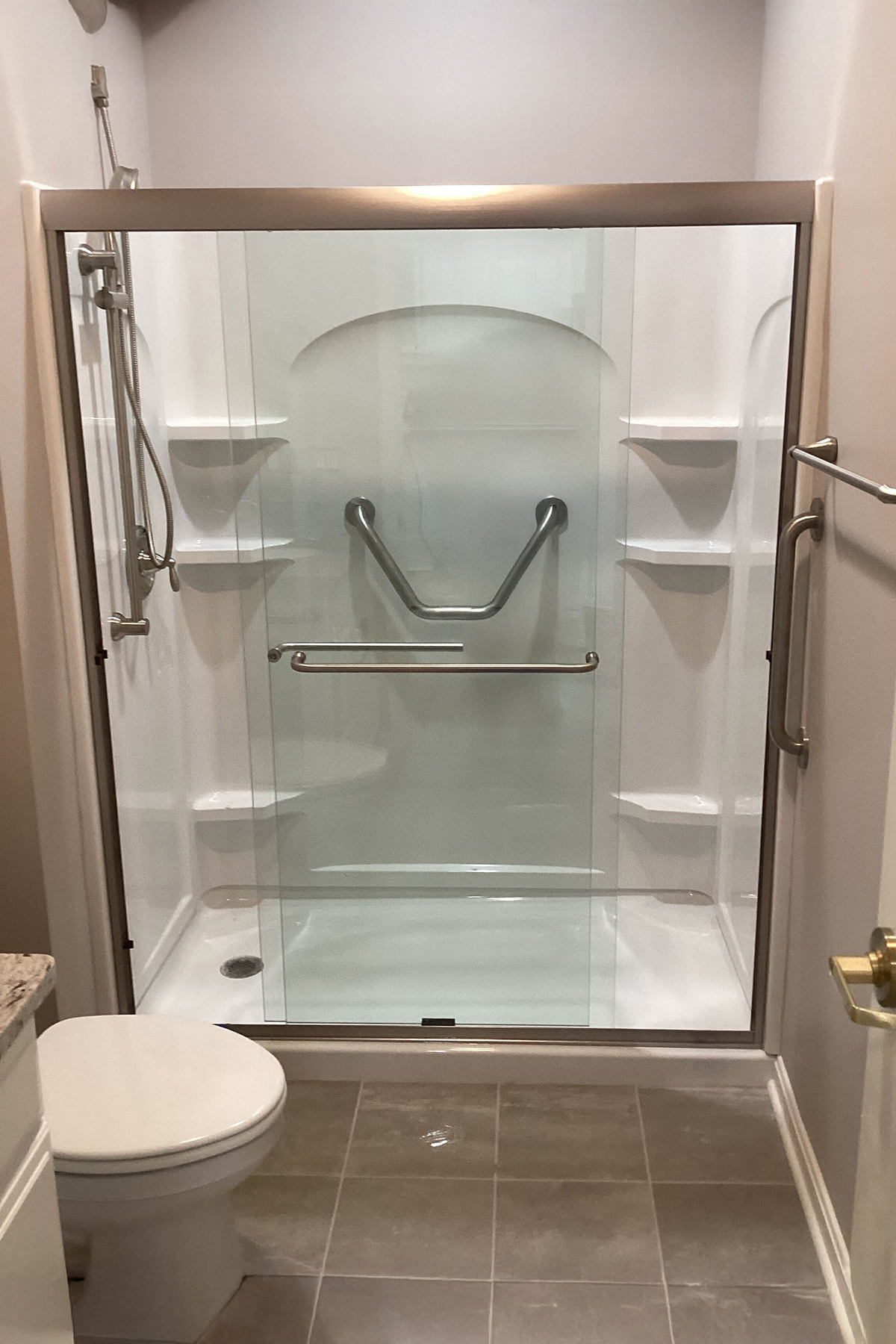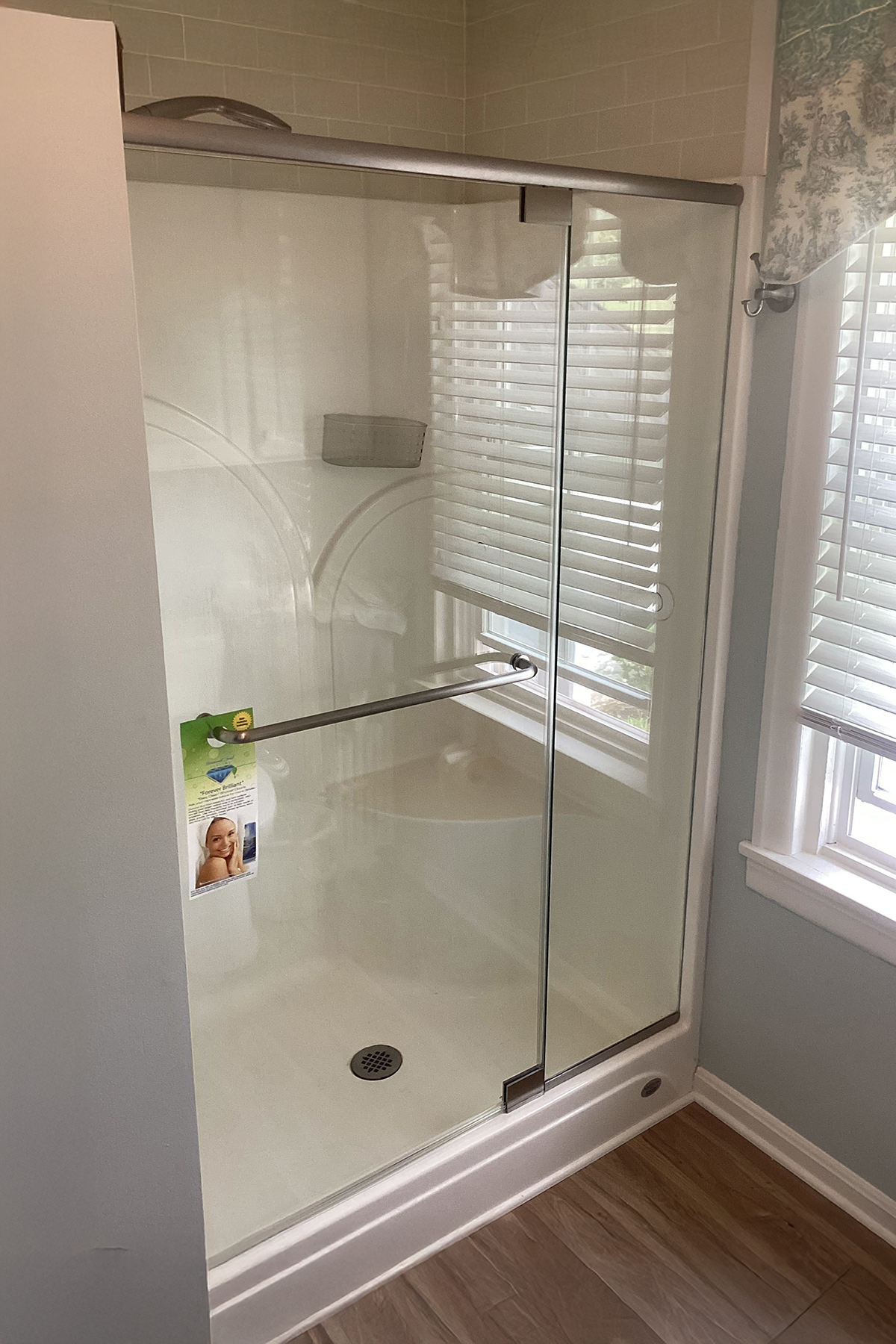 Panel-Door-Panel units where the door hinges off of one of the two inline stationary panels