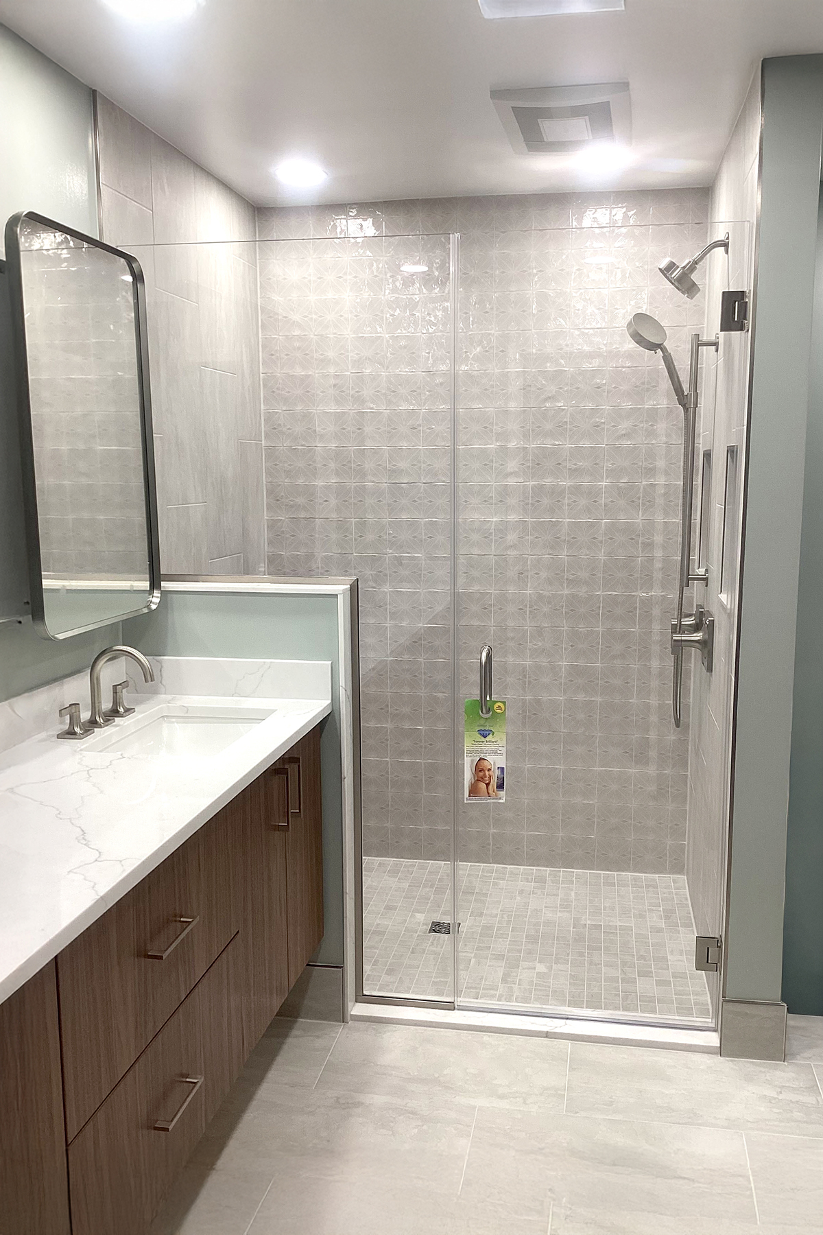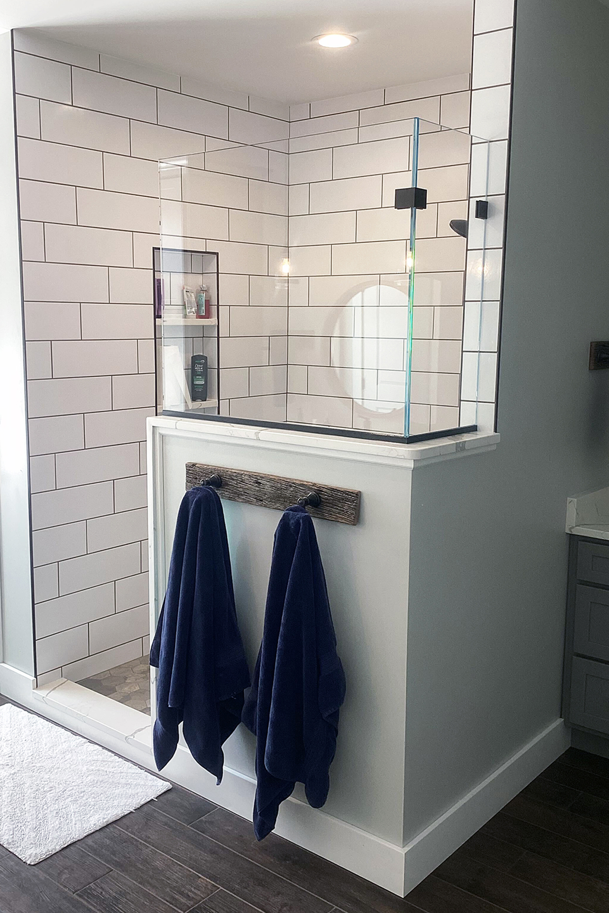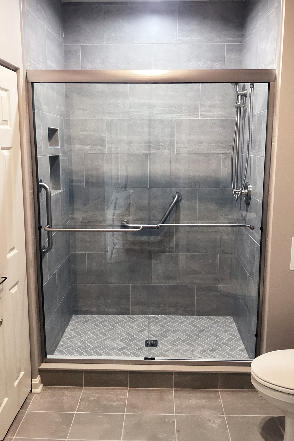 Door & Panel units with a metal header bar atop the unit, and pivot hinges at the top and bottom